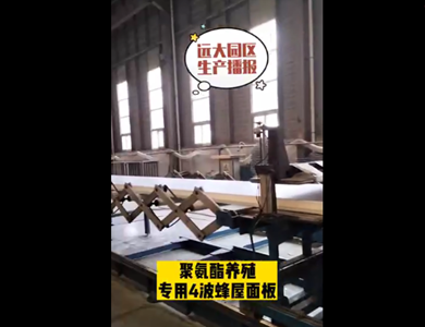 我們公司引進(jìn)意大利賽浦連續(xù)生產(chǎn)線,采用了六組份在線工業(yè)微機(jī)自動(dòng)操作(SIEMENS)混合澆注技術(shù)。生產(chǎn)流程分為開卷覆膜—壓制成型—鋼板預(yù)熱—高壓發(fā)泡—高溫固化—鋸切—板材冷卻—碼垛—自動(dòng)打包等功能與一體的自動(dòng)化生產(chǎn)線,年生產(chǎn)能力為130萬平方米。